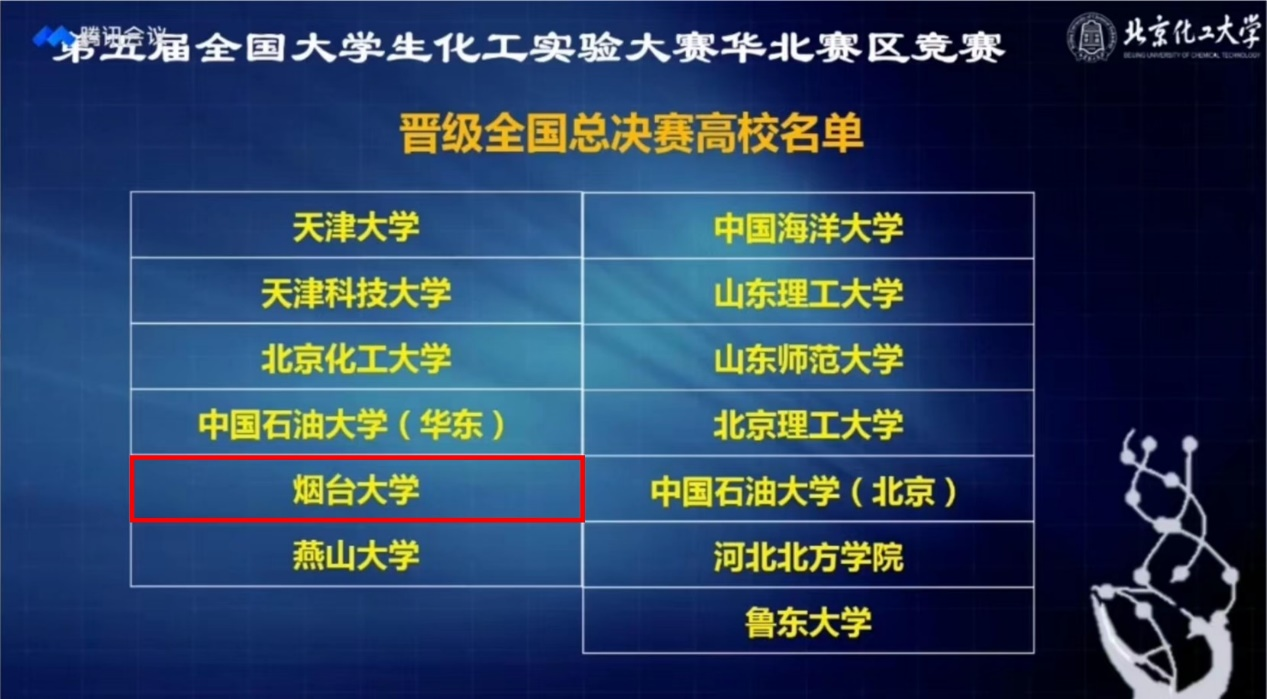 受疫情影响,参赛队员无法亲临比赛现场,比赛全部采取线上形式,线上比赛形式对实验是一大挑战,参赛队员以远程操控实验装置和读取实验数据的形式开展比赛,每个代表队的三名队员通过线上配合完成实验操作和实验报告。在比赛过程中三位同学沉着应战、勇于拼搏、团结协作,体现了烟大学子的优良学风和精神风貌,凭借赛前的充分准备以及比赛期间稳定发挥,最终从强手如林的华北赛区50所参赛院校,150名选手中脱颖而出。