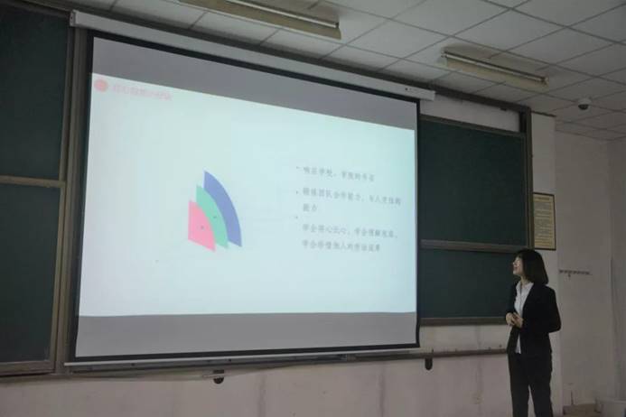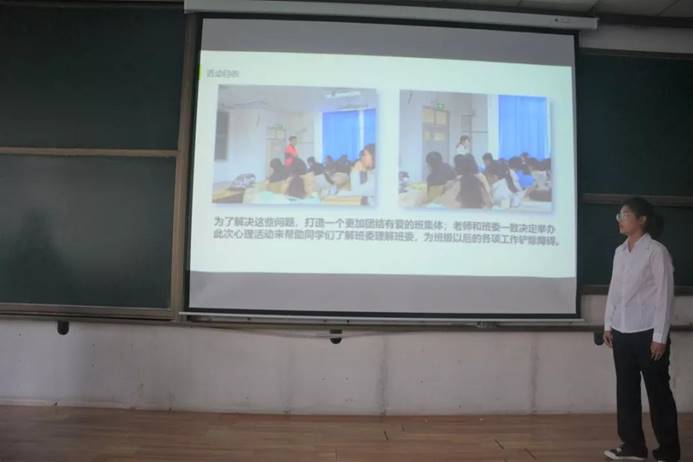 活动伊始,主持人介绍本次答辩会到场的嘉宾、评选的标准及答辩流程,参赛队伍按照提前的抽签顺序依次上场答辩。15支参赛团队的体验岗位不尽相同,每个团队的答辩也各具特色。首先,第一个上场的团队是“推己及人先进班”,该团队在班级内部由普通同学与班委进行换位体验,采取“新班委为主、旧班委为辅”的形式管理班级,并在新旧班委共同的努力下完成了红旗团支部答辩。
