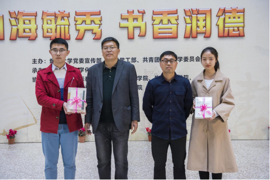 党委学工部部长赵利江老师、化学化工学院金明善教授和生命科学学院学生代表巩佳琦同学现场向师生们推荐了自己喜爱的好书。更多老师、同学们推荐的好书,将在化学化工学院微信公众号“烟大化院”里公布,希望能为大家的书单提供更多的选择。