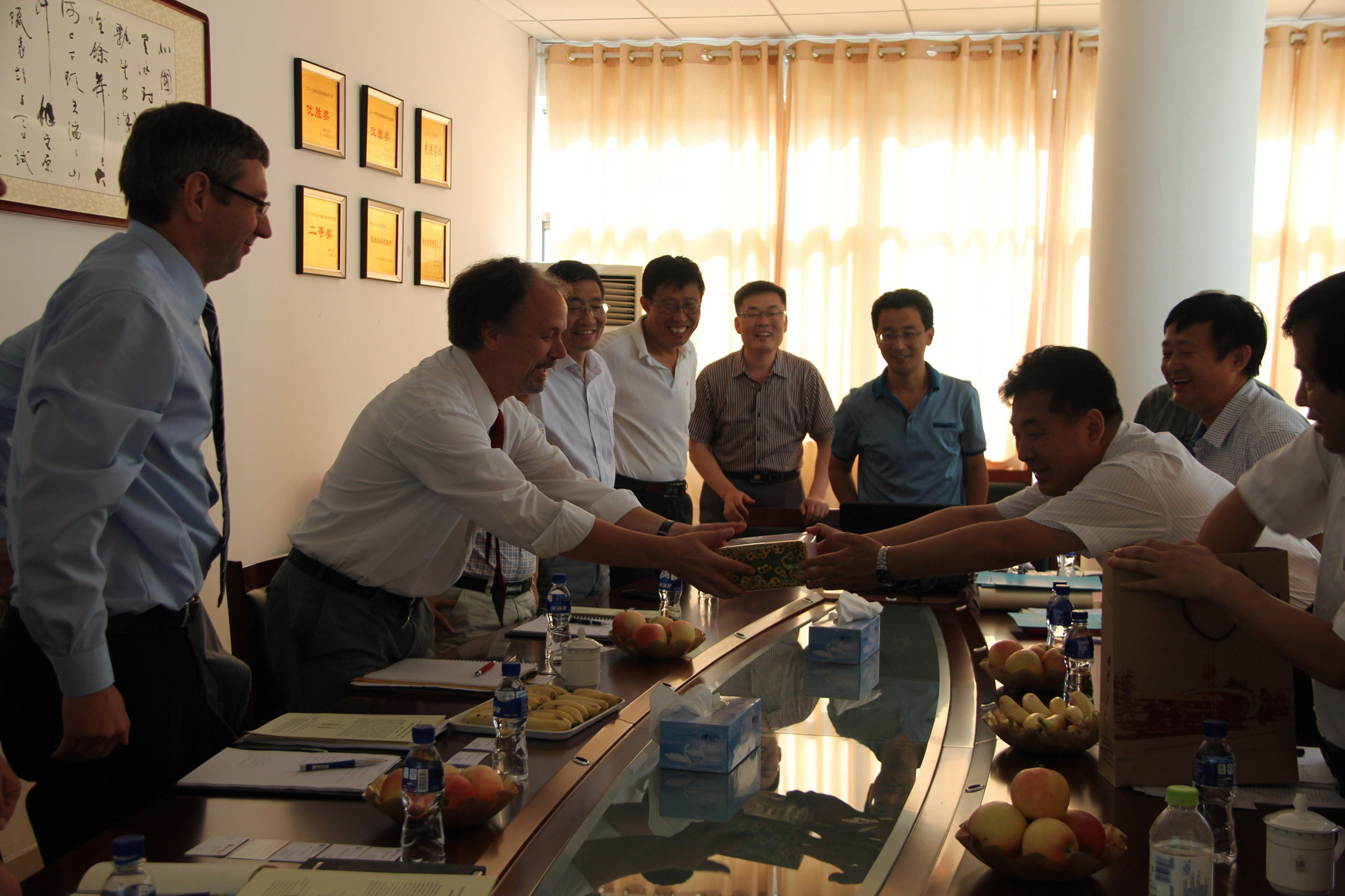 8月26日,德国赢创工业集团全球计划部副总裁Helmut Brueggemann博士与高级项目工程师Andreas Wolff博士一行四人来我校进行化工科研合作洽谈,副校长孙祥斌代表学校会见了德国客人,化院领导和虞乐舜等碳四课题组全体成员、我校客座教授姚亚平研究员一同参加了技术交流会。