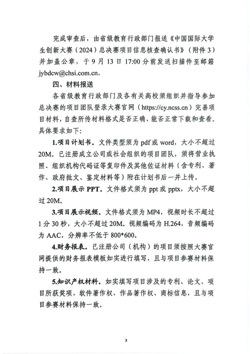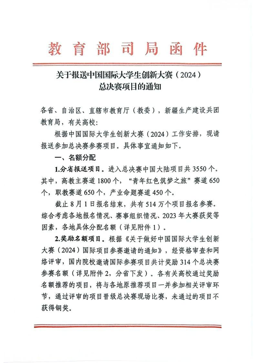 关于报送中国国际大学生创新大赛(2024)总决赛项目的通知