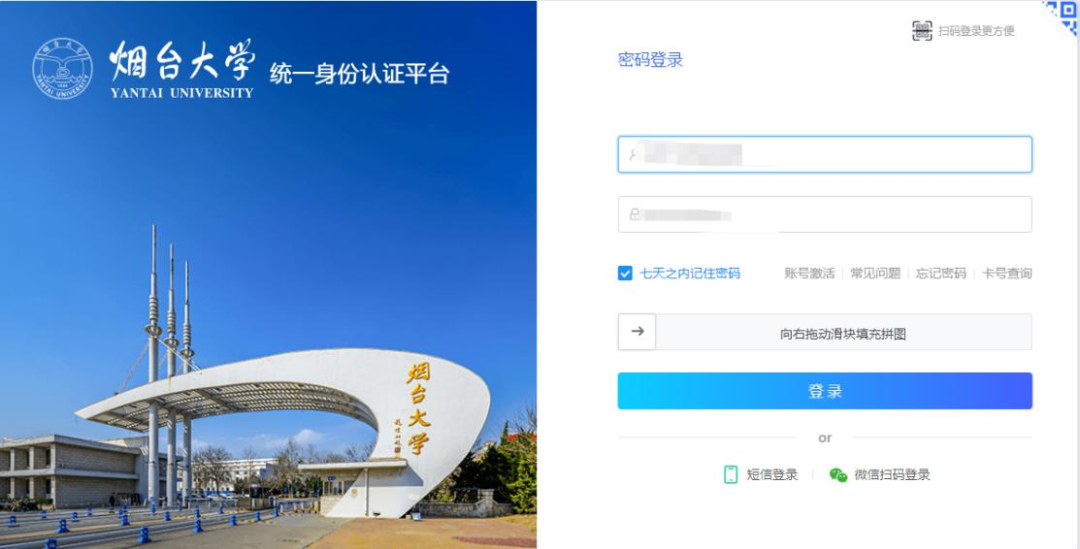 3.通过统一身份认证(支持密码、短信、微信扫码登录)登录。