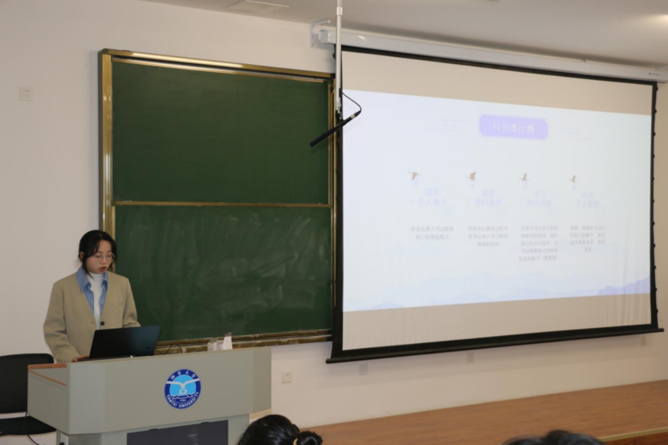 2024年10月至11月,化学化工学院对科创赛事感兴趣同学展开科创宣讲,以学院科研育人体系为载体,指导学生参与实践和创新,以“挑战杯”、“互联网+”和省科创等代表性赛事为例向学生进行赛事介绍和参赛指导,提高学生创新能力和参赛技能。