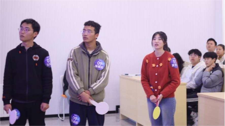 在第一场中,9号化学化工学院张健超,11号化学化工学院夏丹丹率先晋级,其余四名选手因分数相同进行了一场加时赛。最终晋级第四轮比赛的是:9号化学化工学院张健超、11号化学化工学院夏丹丹、6号核装备与核工程学院王博文、7号药学院万延辉。