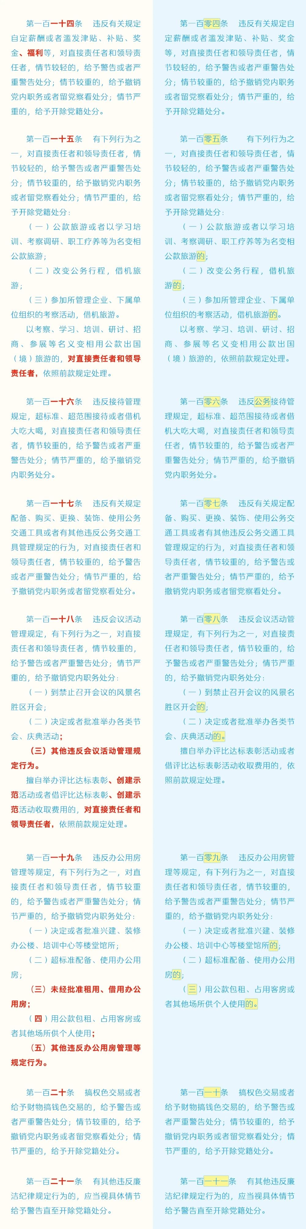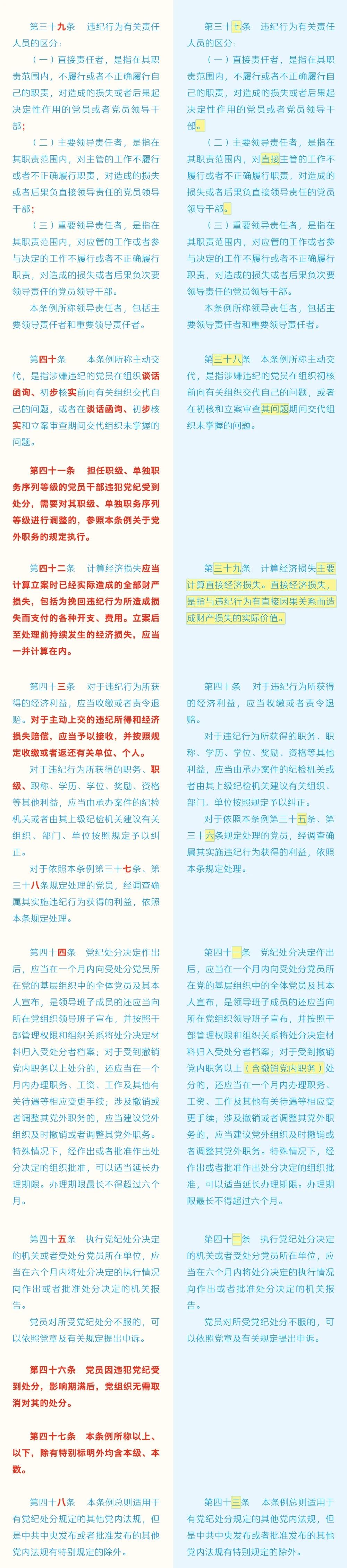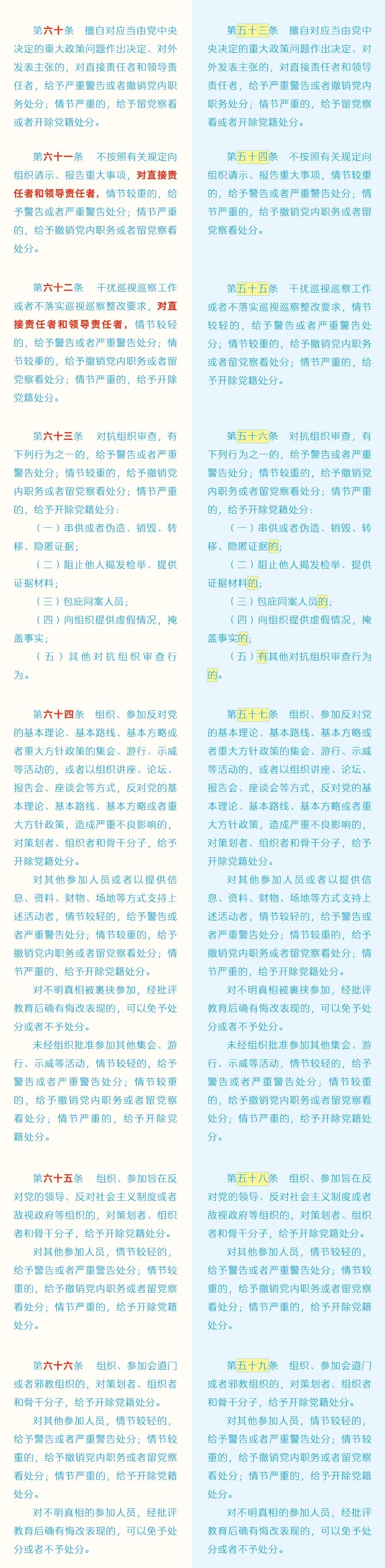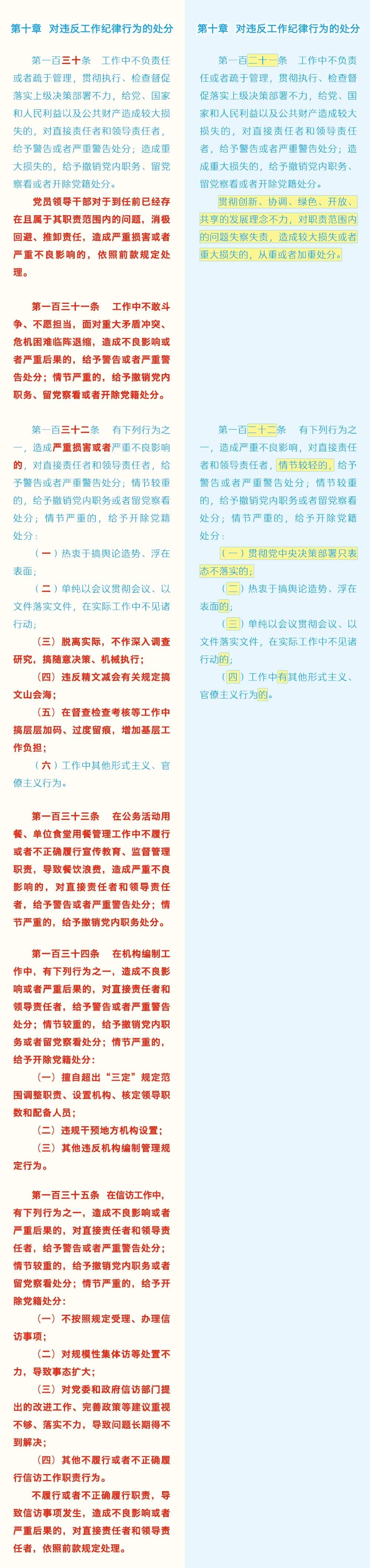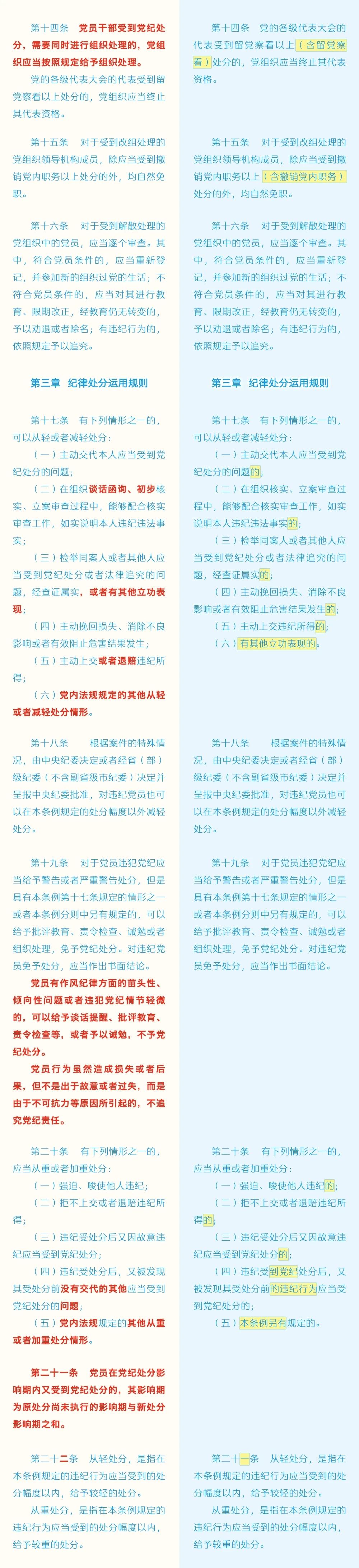 党纪学习教育 | 《中国共产党纪律处分条例》修订前后对照表