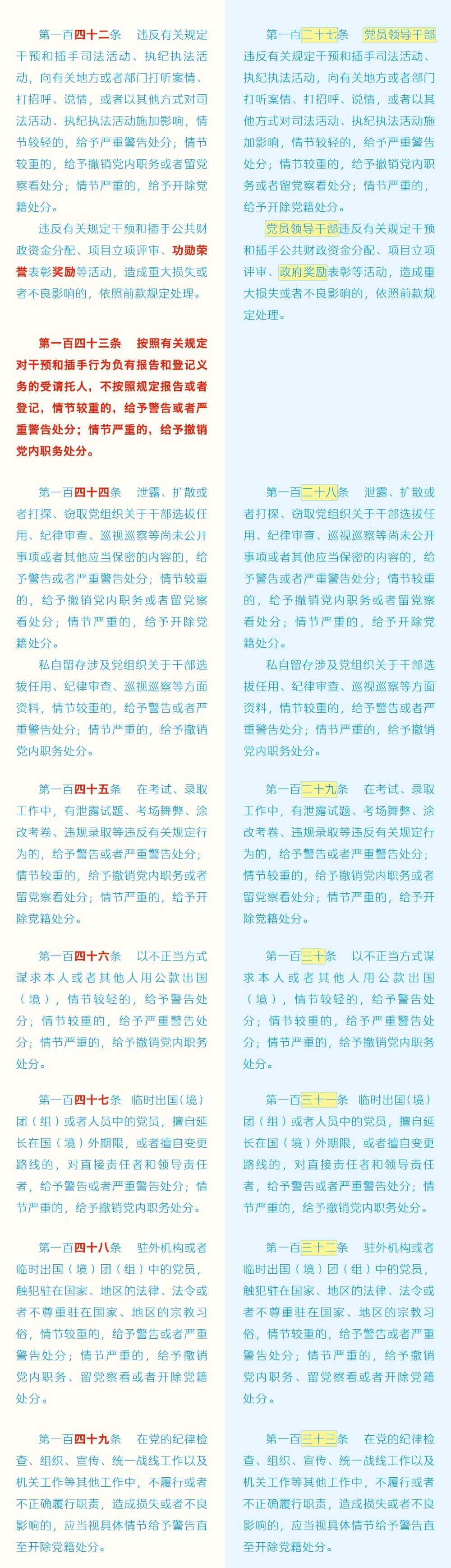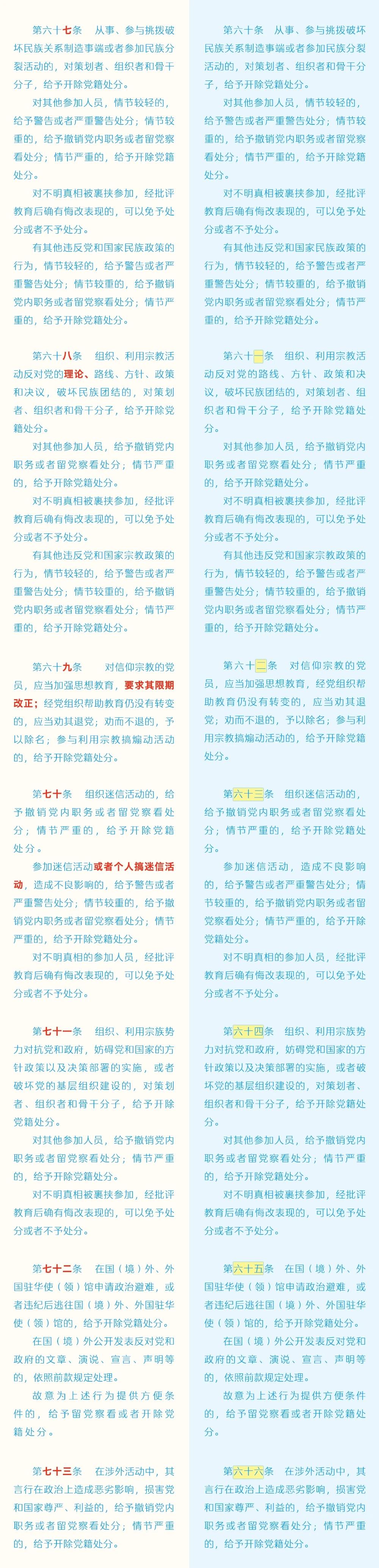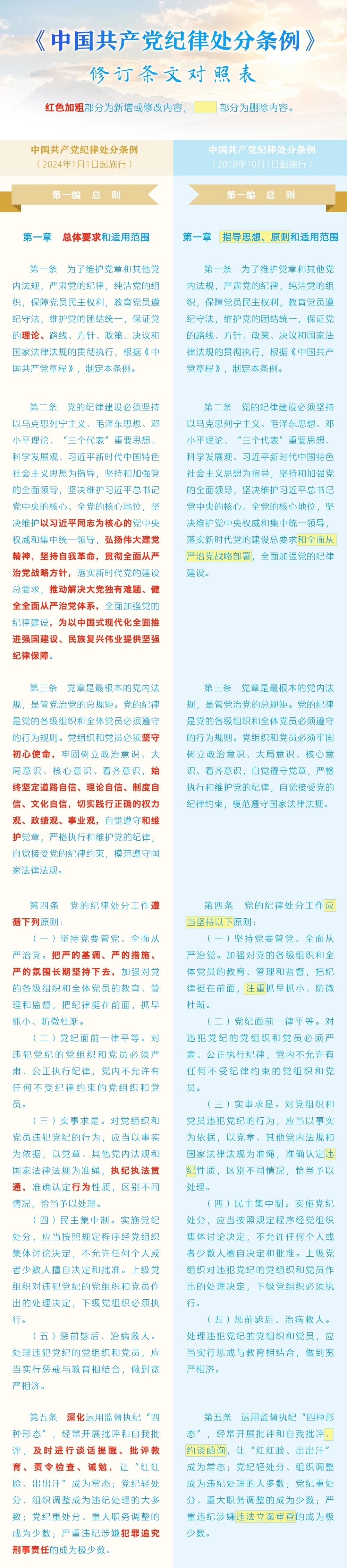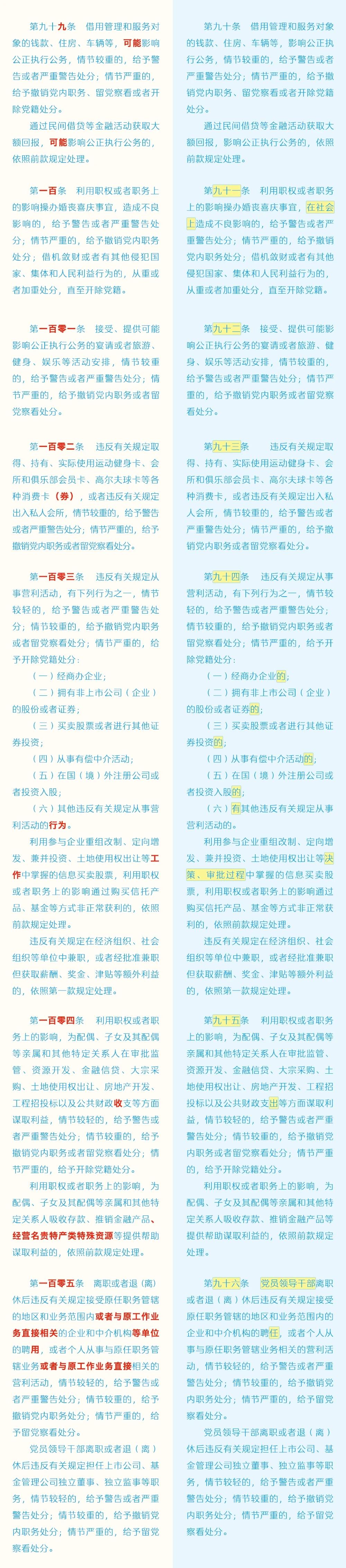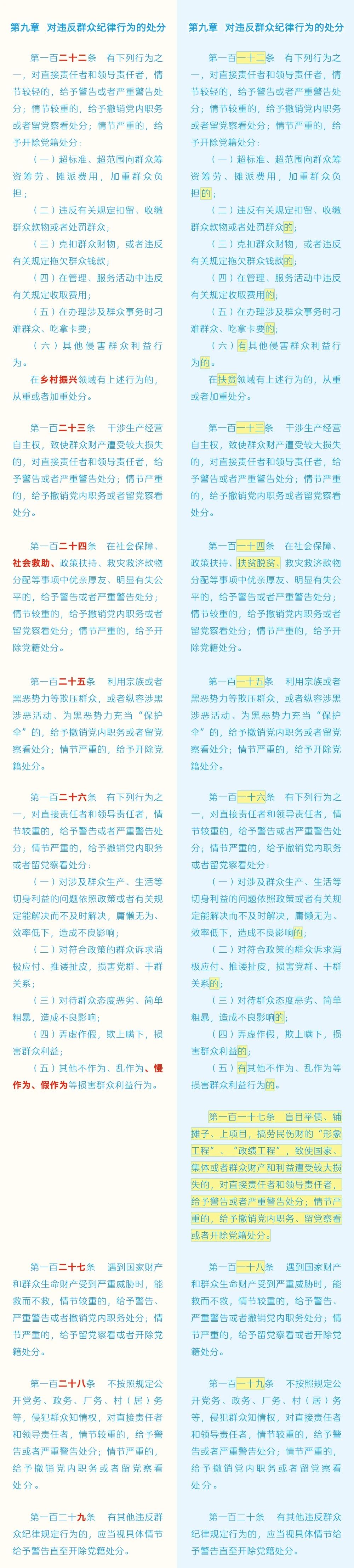 党纪学习教育 | 《中国共产党纪律处分条例》修订前后对照表