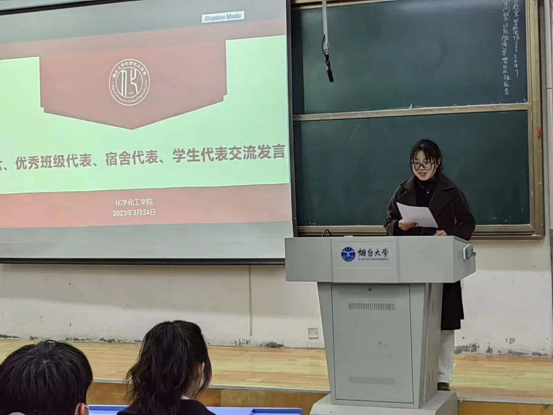 随后,赵锦泽老师和赵颖老师分别代表院团委、院学工组宣读了化学化工学院共青团表彰文件和学生服务教育管理工作表扬文件,表彰了在上学期在学院学工工作中表现优异的学生集体和个人。