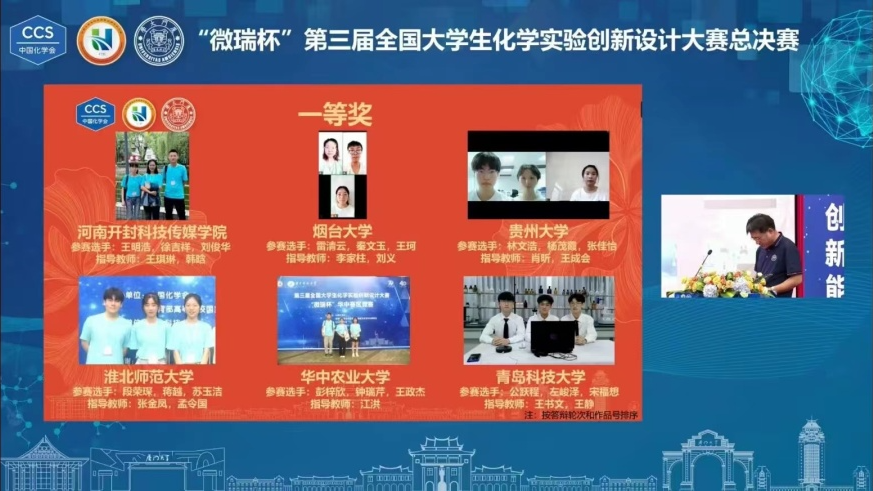 据悉,“全国大学生化学实验创新设计大赛”是全国性的大学生学科竞赛,旨在夯实大学生的化学基础知识、基础理论和基本技能,强化大学生发现问题、分析问题和解决问题的能力,培养大学生的创新意识、创新能力和创新精神,建立展示大学生实践创新能力的交流平台,推动我国高等学校实验实践教学模式改革,是我国化学学科竞赛的最高等级赛事。