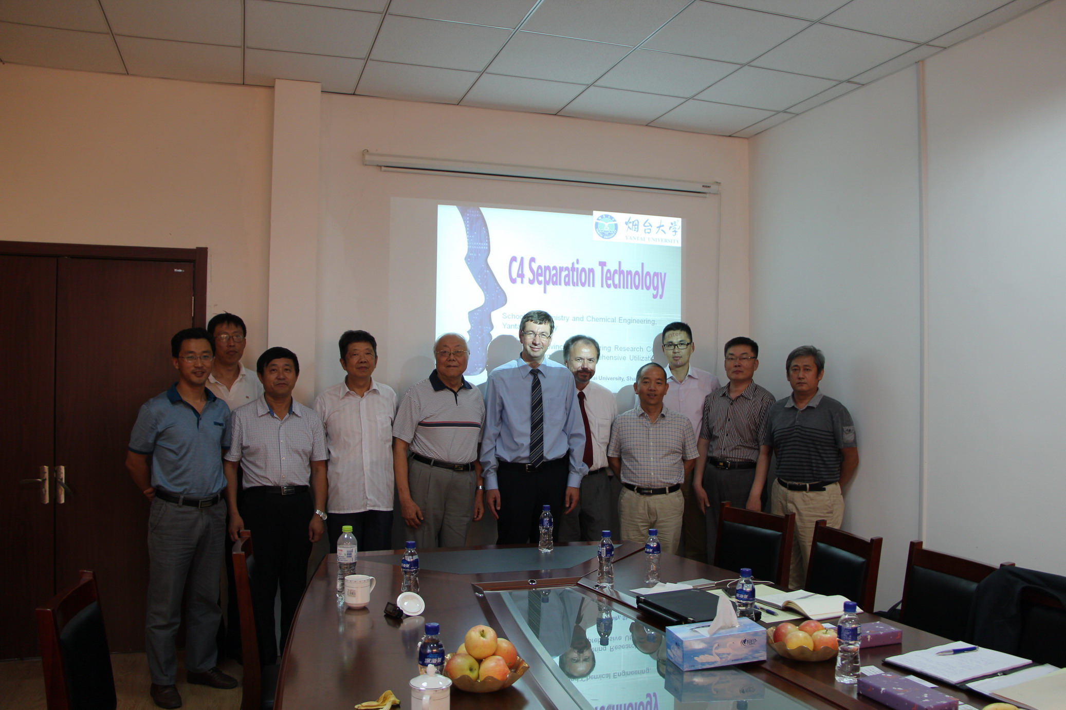 接着双方进行了技术交流,化院陈小平、王文华代表碳四课题组向Andreas Wolff博士一行详细介绍了“烟台大学碳四分离技术”的优势及转化应用案例的情况。德国两位专家对“烟台大学碳四分离技术”优势和课题组完成工艺包的深度给予充分的肯定和赞誉。经过双方交流协商,近期拟在丁烯提浓萃取精馏工艺及后续应用等方面展开深入合作,以实现双方优势互补、共同发展的目标。