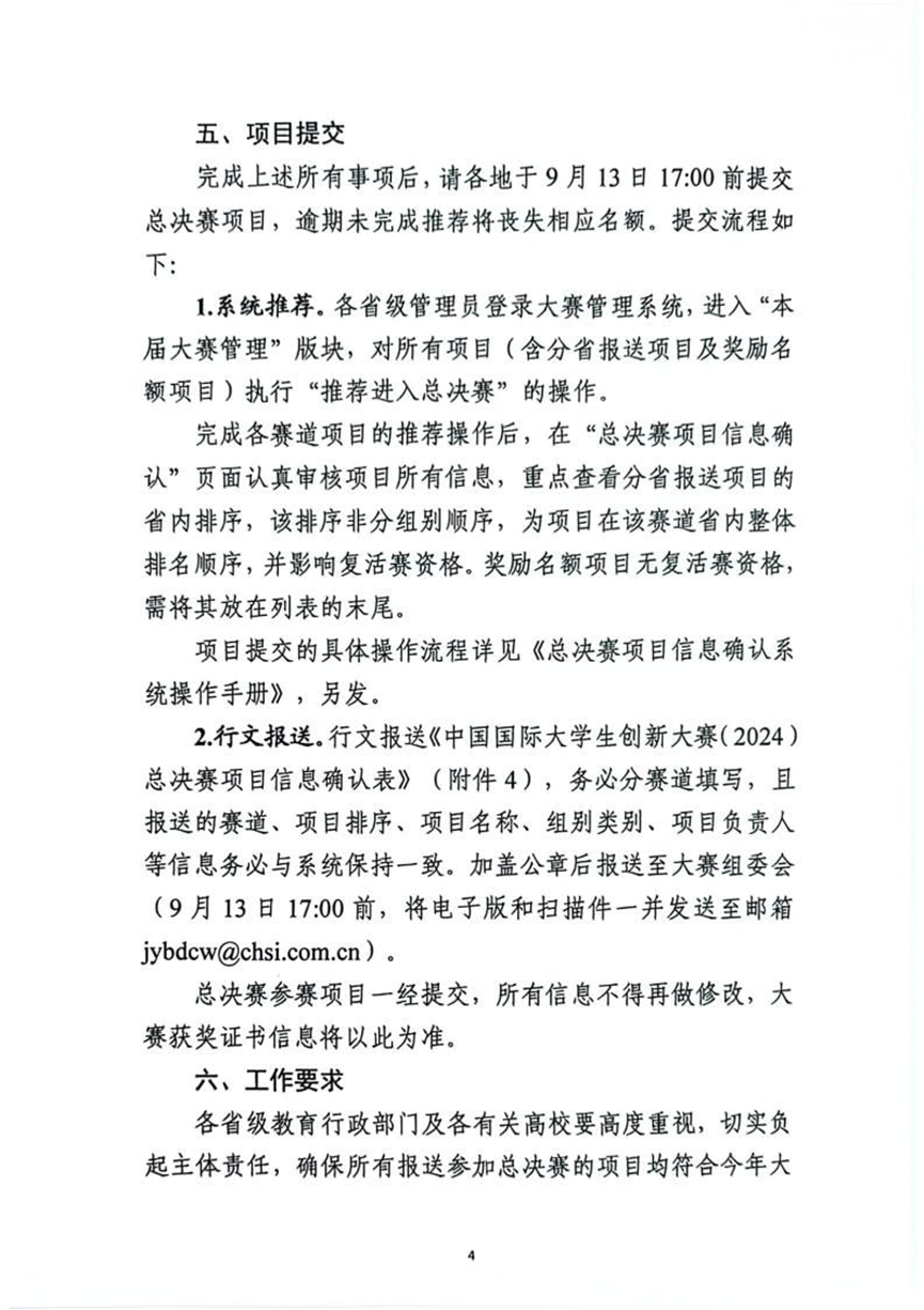关于报送中国国际大学生创新大赛(2024)总决赛项目的通知